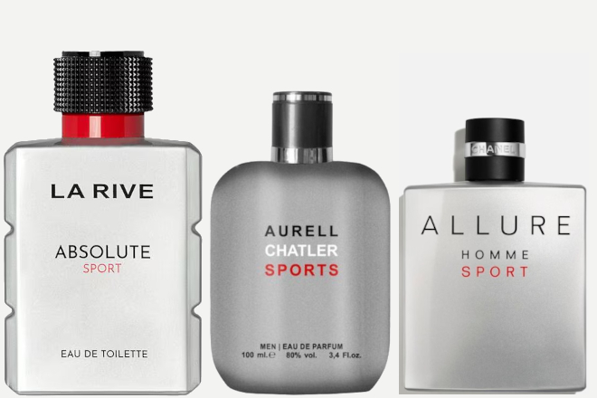 La Rive: Absolute sport (edt) 100 ml – €9,99 | Chatler – Aurell Sports (edp) 30 ml – €5,99 | Chanel – Allure homme sport (edt) (adviesprijs: €125 – 100 ml)