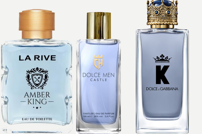 La Rive: Amber King (edt) 100 ml – €7,45 | Chatler – Dolce Men Castle (edp) 30 ml – €5,99 | Dolce & Gabbana – K (edt) (adviesprijs: €122 – 100 ml)