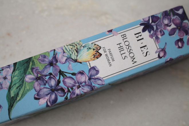 ‘Het verfijnde BI-ES Blossom Hills parfum belichaamt bloeiende jeugd en kinderlijke onschuld. De harmonieus opgebouwde, verfijnde geurpiramide verrijkt met bloemige noten die op de huid schitteren en een rijke geurspoor achterlaten. Het ergonomische flesontwerp maakt het een onmisbare metgezel voor in de tas.’