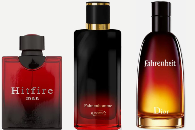 La Rive: Hitfire (edt) 90 ml – €9,99 | Chatler – Fahnenhomme (edp) 30 ml – €5,99 | Dior – Fahrenheit (edt) (adviesprijs: €129 – 100 ml)