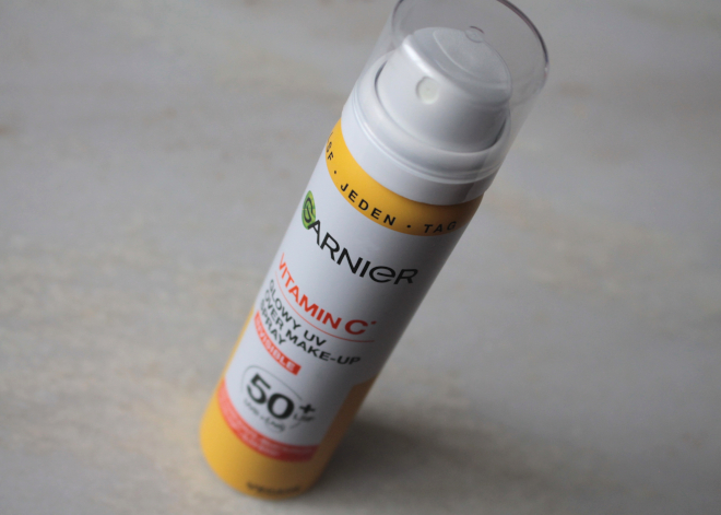 De Garnier vitamin C glowy UV over make-up spray SPF 50+ is makkelijk in gebruik, je voelt het niet op de huid zitten, het laat geen witte waas achter (wat sommige zonbeschermingsproducten nog wel eens willen doen, wel even goed schudden voor gebruik) en het laat ook geen vettig laagje achter waardoor je de hele dag rondloopt met een glimmende ‘vette bek’. Na gebruik heeft mijn huid een natuurlijke glow. Hij is ook lekker compact van formaat, dus ook prima mee te nemen onderweg. Het heeft een subtiele frisse geur met aanbrengen, die niet blijft hangen. Deze spray ga ik sowieso gebruiken tijdens de 4Daagse waarbij ik ruim 8 uur per dag in de volle zon loop (4 dagen lang).