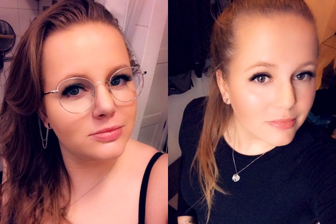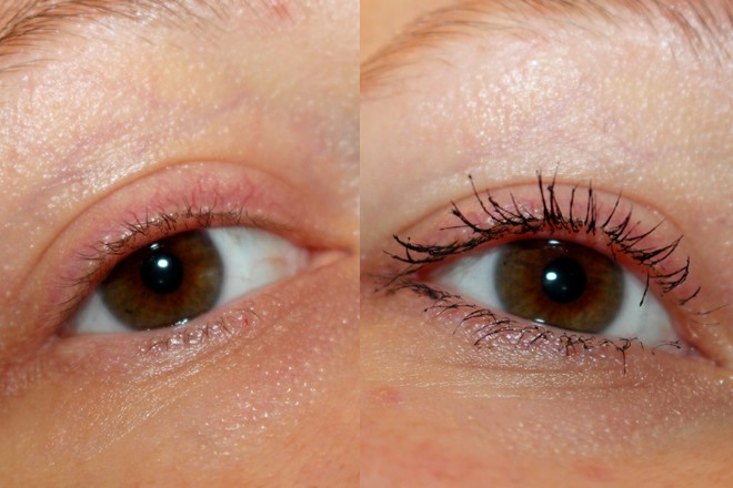 Links alleen mascara & rechts met de kunstwimpers van Essence.