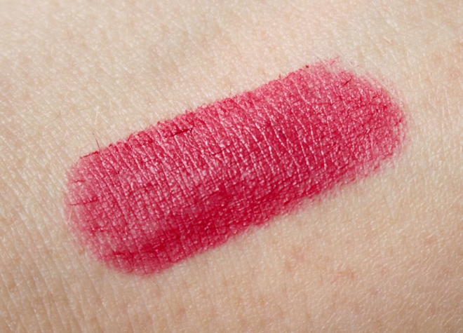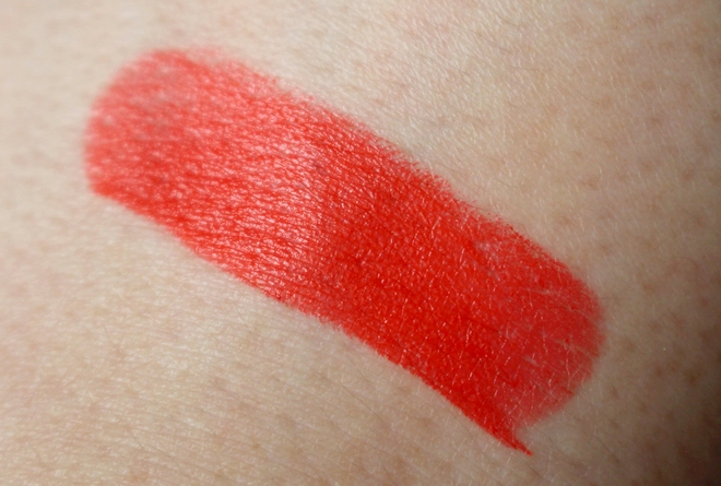 In de huls lijkt Idol red een intense rode tint, op de swatch op mijn hand en op mijn lippen heeft ‘ie echter een wat koele/oranje ondertoon. Ik had hem liever wat warmer rood gezien, zoals Chili van MAC, maar het is een prachtige kleur voor in het voorjaar en de zomer.